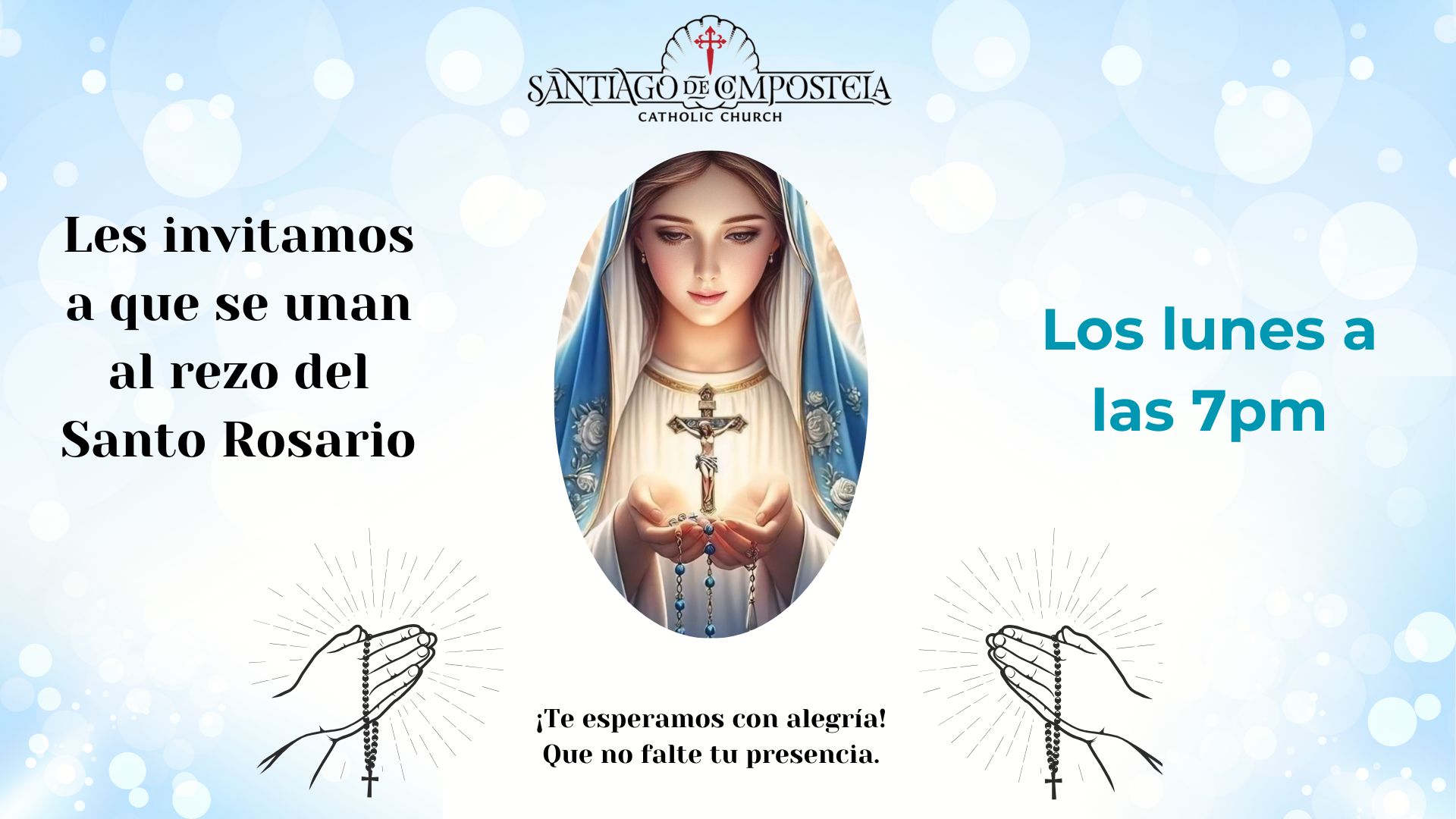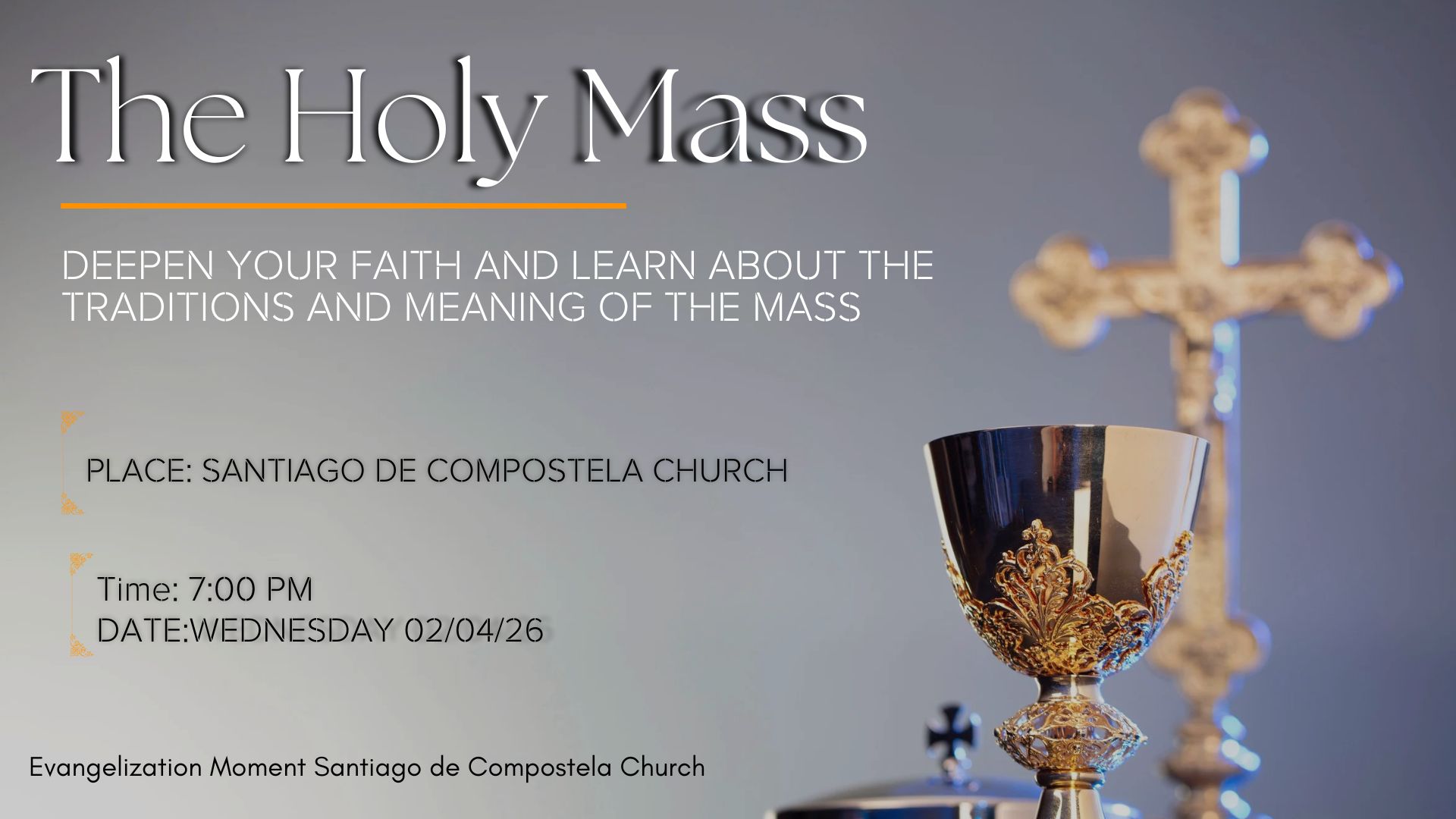 With the guidance of the Holy Spirit, we, the Roman Catholic Community of Santiago de Compostela, aspire to proclaim in word and in action the living Gospel of Jesus Christ.